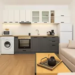 - ❓Czy w apartamencie znajduje się kuchnia do użytku gości?Tak, ten apartament wyposażony jest w pełnowymiarową kuchnię i oferuje czajnik elektryczny, lodówkę i szklane naczynia.